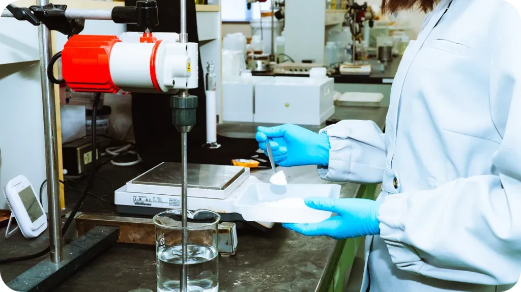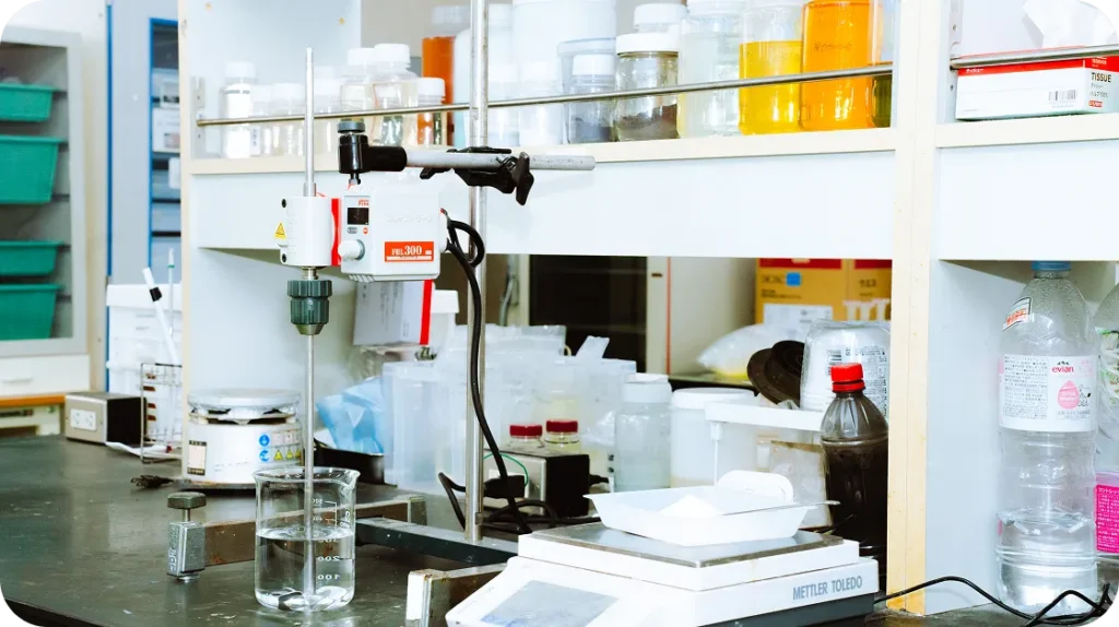 技術課は、開発段階を終えた製品を量産化へとつなげる重要な役割を担っています。お客様の初期評価をクリアした開発品をもとに、スケールアップ製造による検証を行い、安定した品質と高い生産効率を実現するための工程改善を進めています。少量試作から本格的な生産スケールへと移行する過程で、品質を維持しながら確かなものづくりを支える中心的な部署です。