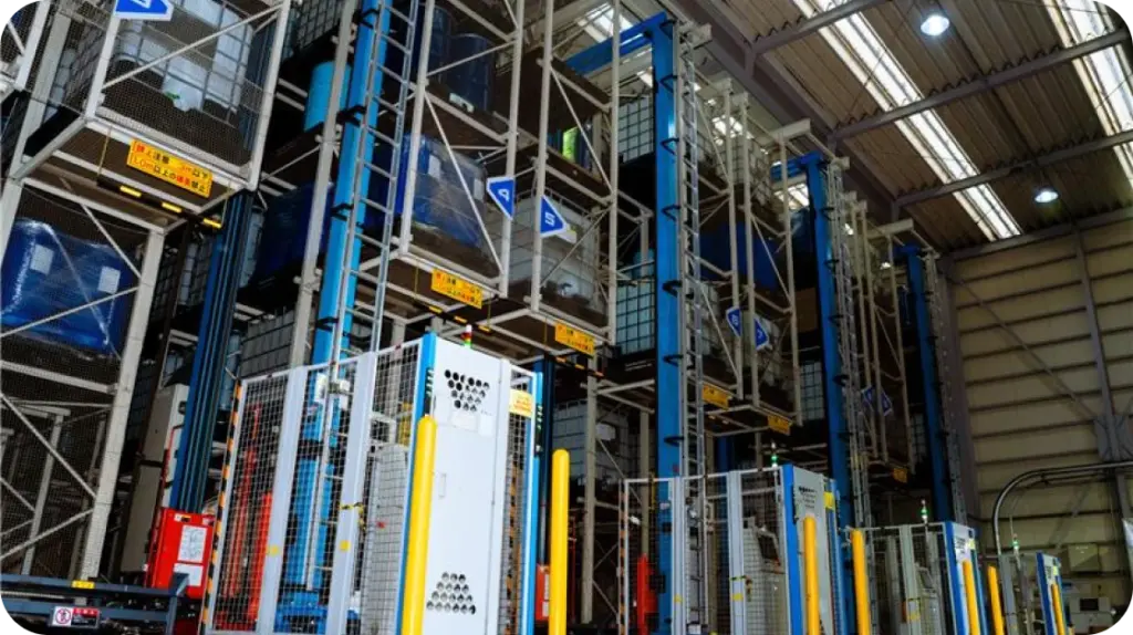 また、倉庫課では2つの自動倉庫を運用しています。第一自動倉庫は約500棚、第二自動倉庫は約900棚を有し、PCを用いてシステム管理を行っています。自動倉庫システムによる効率的な在庫管理で、正確かつスムーズな物流を支えています。